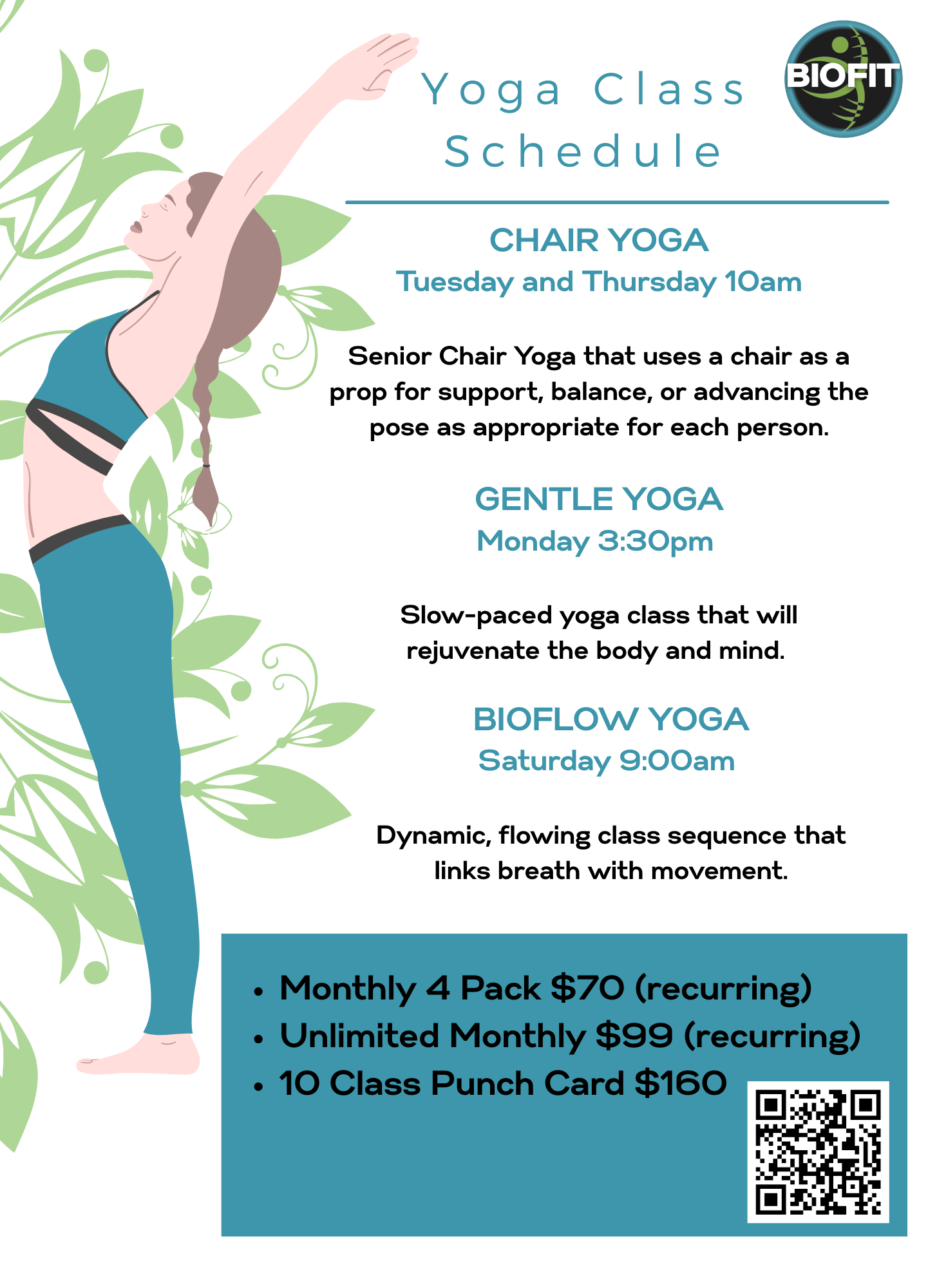 Allison is a 200hr Certified Ashtanga Yoga and believes that it’s important to understand the connection between brain, body and breath. She leads BioFit’s Senior Chair Yoga, Gentle Yoga and BioFlow Yoga classes.